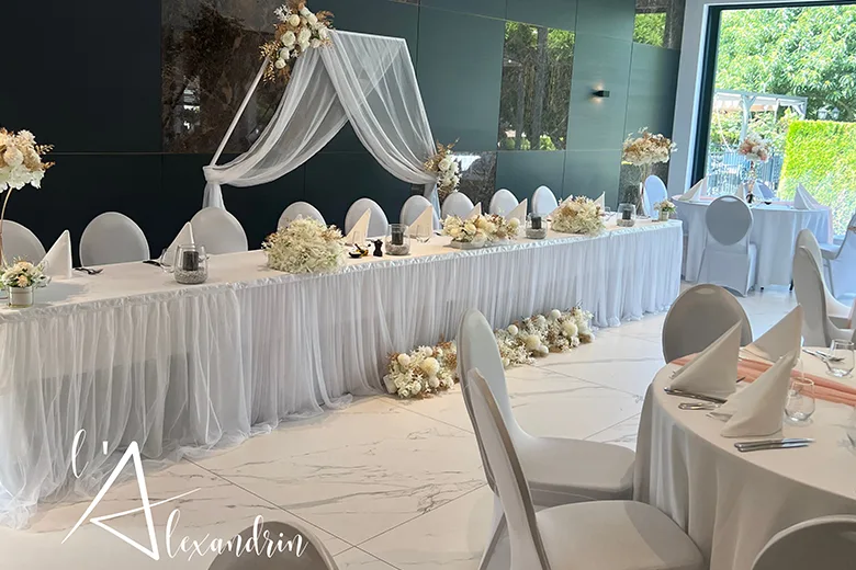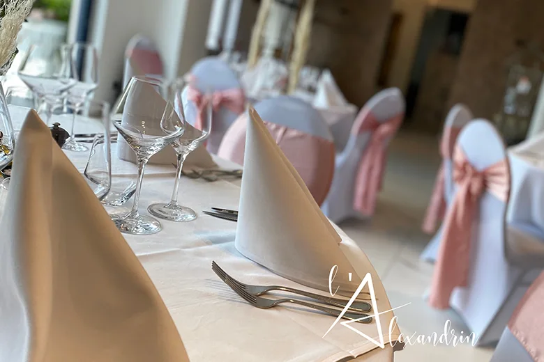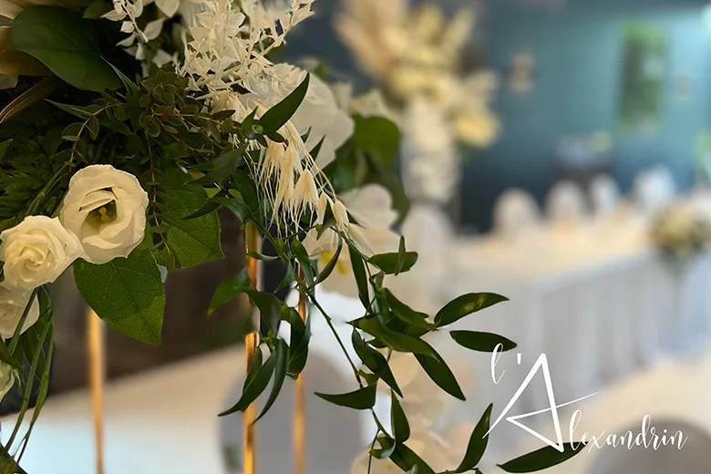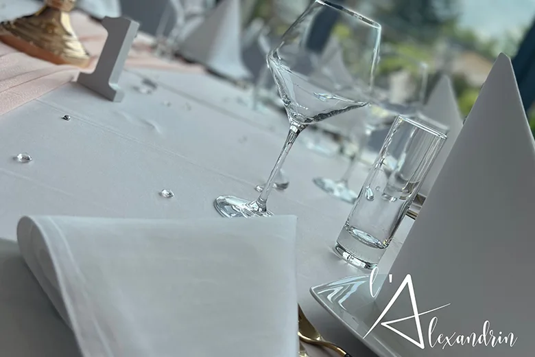 Votre fête de mariage sera un ensemble précis d’événements de célébration ? Réception champagne, repas élégant, discours, première danse, cérémonie du gâteau de mariage, jeux… tout ceci demande une préparation minutieuse. L’équipe de l’Alexandrin sera à votre entière disposition, selon vos souhaits. Nous vous aiderons à organiser votre événement dans les meilleures conditions, pour que vous puissiez vous concentrer entièrement sur votre union et sur le partage de cet instant inoubliable avec vos proches.