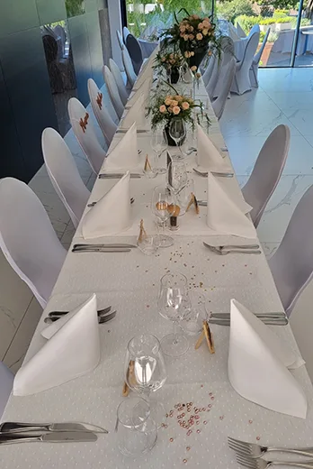 Nous vous invitons à considérer notre salle de mariage le plus tôt possible. En raison de son succès et de sa popularité, elle est fortement demandée autour des périodes propices aux mariages. N’hésitez surtout pas à nous contacter pour toute demande d’informations : la prise de contact et la visite des lieux sont sans engagement.