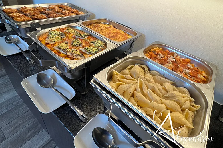 Pour l’organisation de tout événement dans notre salle de réception et de séminaire à Charleroi, l’Alexandrin vous propose son service traiteur. Avec une riche diversité de plats et de formules, il saura ravir les papilles de vos invités, toujours avec une qualité impeccable. De l’apéro au plat de résistance, il sera un élément central du succès de votre événement.
